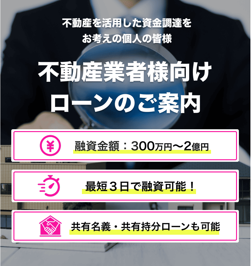 優良な担保と明確な事業性があれば、煩雑な書類は不要。不動産のプロの目線でスピーディに査定し、最短で資金調達を実現します。